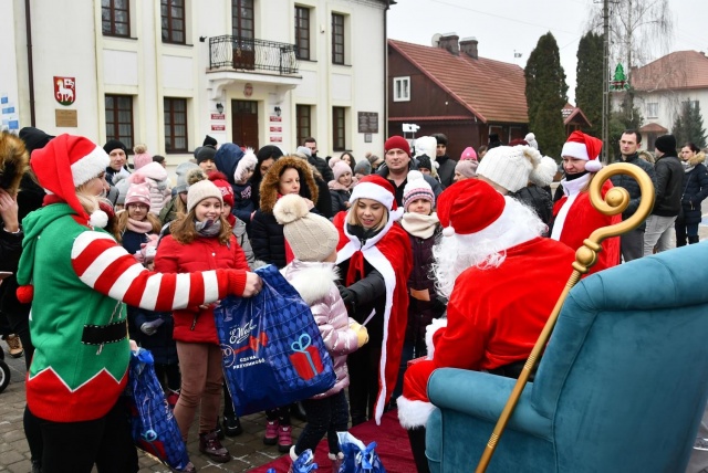 Przed przybyciem św. Mikołaja na placu przed ratuszem na choinkach rozbłysły lampki, a z głośników popłynęła świąteczna muzyka.