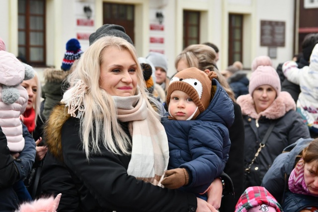 Przed przybyciem św. Mikołaja na placu przed ratuszem na choinkach rozbłysły lampki, a z głośników popłynęła świąteczna muzyka.