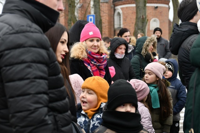 Przed przybyciem św. Mikołaja na placu przed ratuszem na choinkach rozbłysły lampki, a z głośników popłynęła świąteczna muzyka.