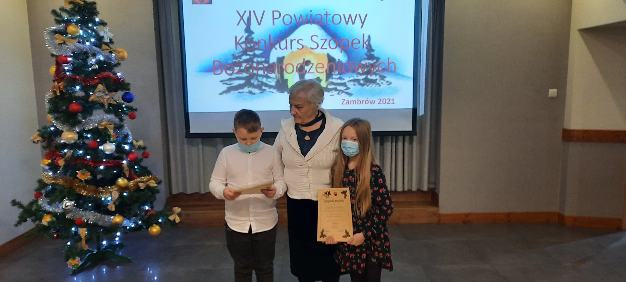 2 grudnia 2021 r. w Bursie Szkolnej nr 1 w Zambrowie odbyło się uroczyste ogłoszenie wyników oraz wręczenie nagród i dyplomów dla zwycięzców XIV Powiatowego Konkursu Szopek Bożonarodzeniowych 2021.
