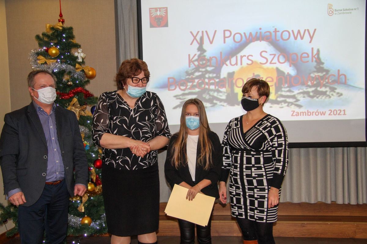 2 grudnia 2021 r. w Bursie Szkolnej nr 1 w Zambrowie odbyło się uroczyste ogłoszenie wyników oraz wręczenie nagród i dyplomów dla zwycięzców XIV Powiatowego Konkursu Szopek Bożonarodzeniowych 2021.