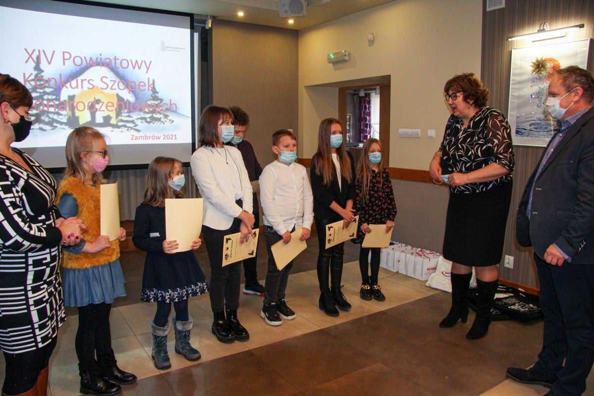 2 grudnia 2021 r. w Bursie Szkolnej nr 1 w Zambrowie odbyło się uroczyste ogłoszenie wyników oraz wręczenie nagród i dyplomów dla zwycięzców XIV Powiatowego Konkursu Szopek Bożonarodzeniowych 2021.