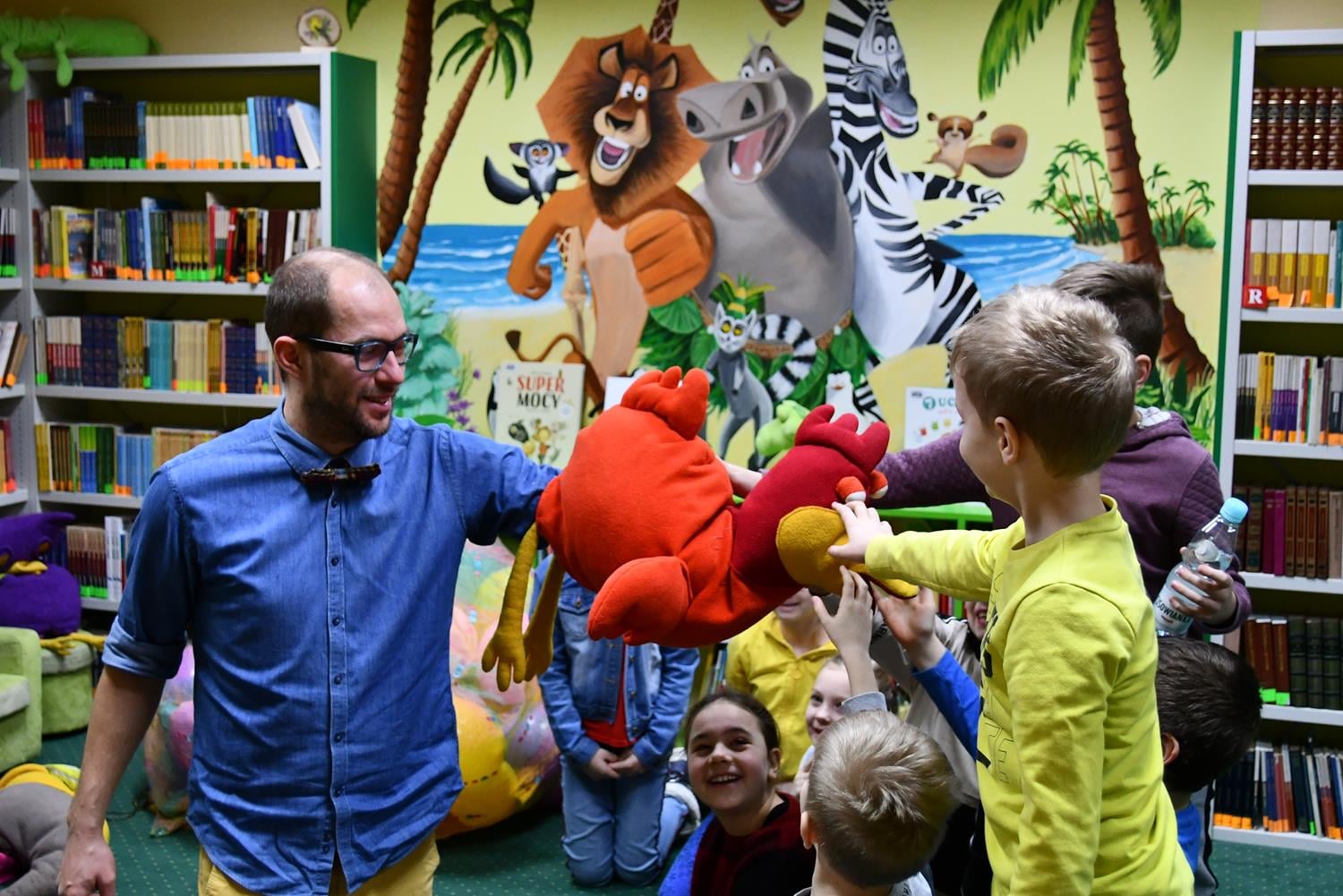 Niecodzienny gość dla uczestników ferii zimowych w bibliotece przygotował wiele ciekawych atrakcji.