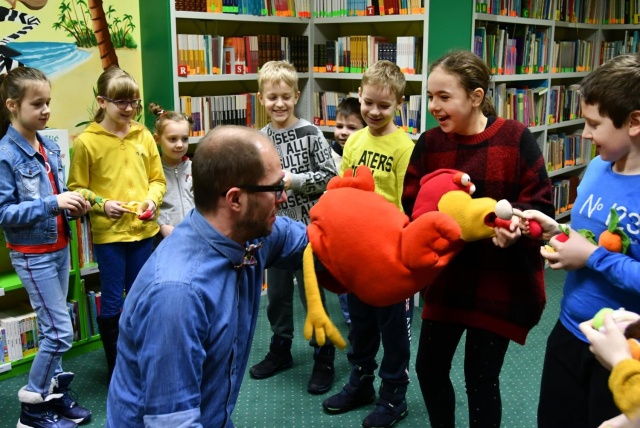 Niecodzienny gość dla uczestników ferii zimowych w bibliotece przygotował wiele ciekawych atrakcji.