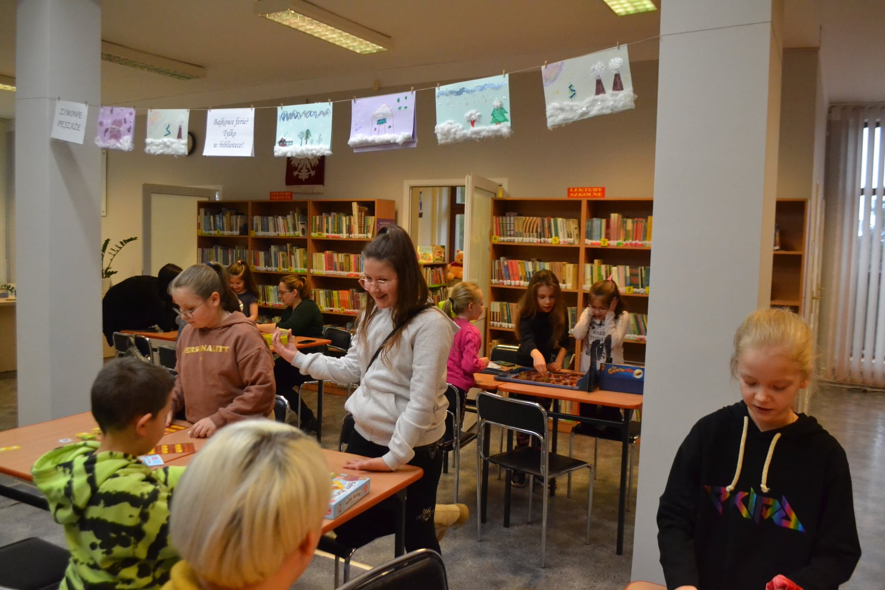 Jedną z aktywności przeznaczoną dla dzieci było wykonywanie zimowych pejzaży w ramach warsztatów plastycznych.