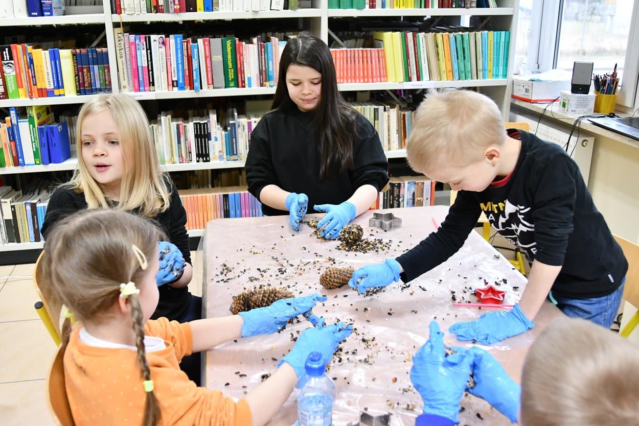 Dzieci i młodzież najpierw wysłuchały wybranej opowieści, a potem obejrzały film o ptakach zimujących w Polsce oraz materiał traktujący o dokarmianiu naszych małych przyjaciół.