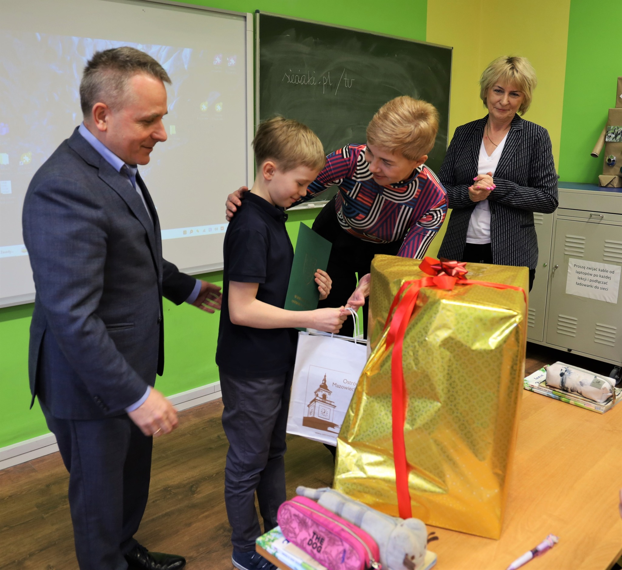 Małego bohatera odwiedzili burmistrz Jerzy Bauer oraz dyrektor Wydziału Oświaty, Dorota Ambroziak.