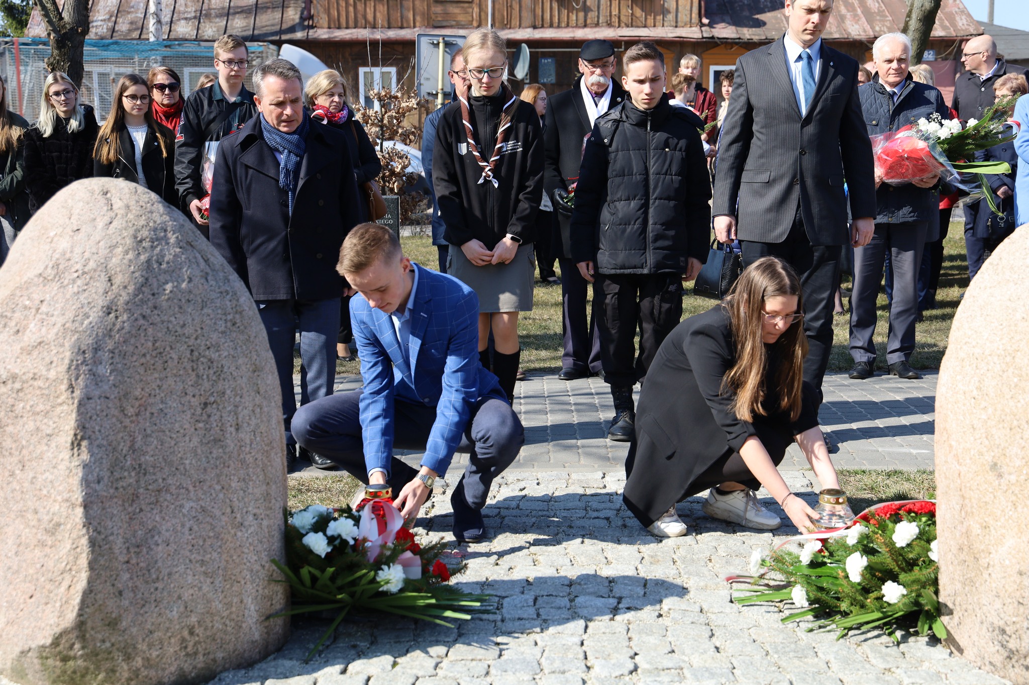 Burmistrz Jerzy Bauer, dyrektor Muzeum Domu Rodziny Pileckich Karol Madaj, delegacje z powiatu ostrowskiego oraz delegacje z lokalnych szkół złożyły kwiaty.