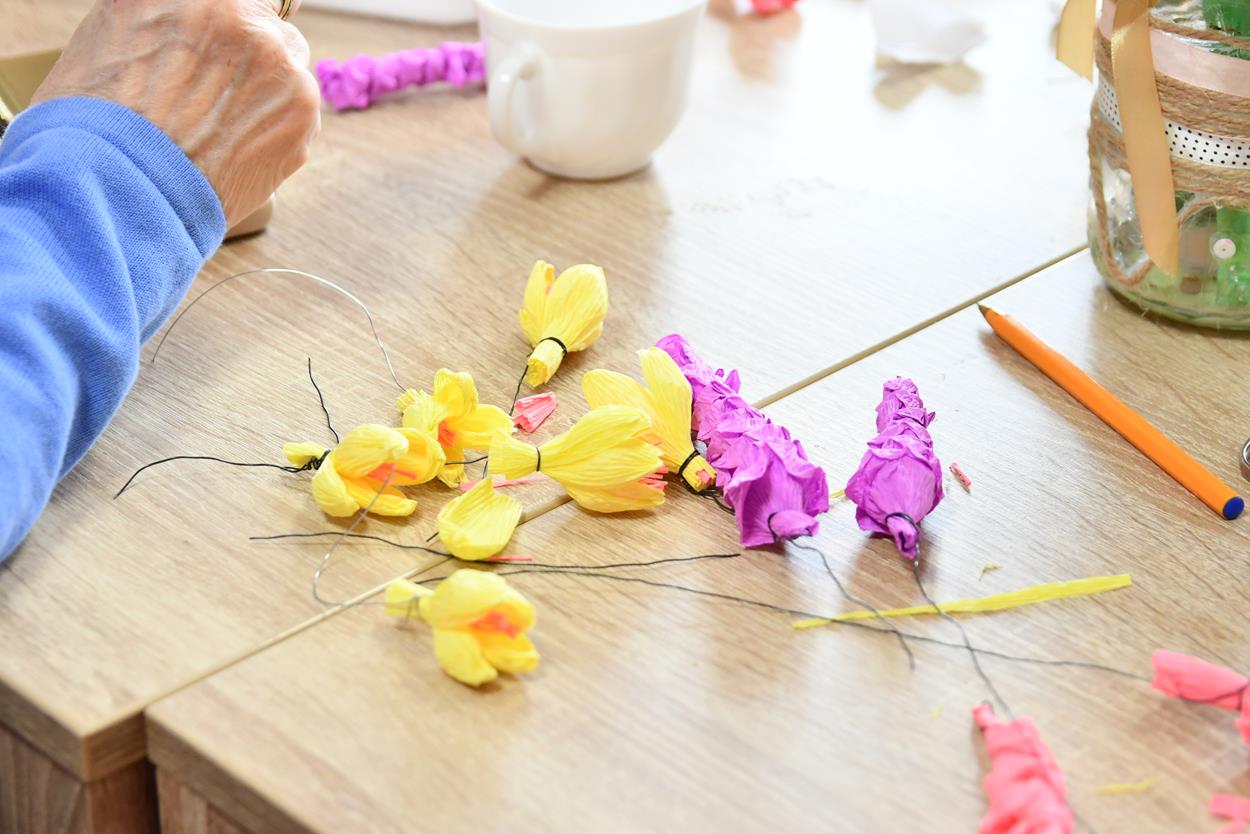 Pod okiem Stanisława Ropiaka z bibuły powstały piękne kolorowe palmy.