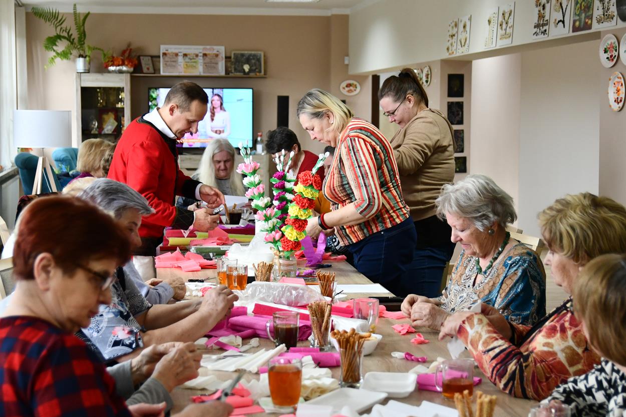 Pod okiem Stanisława Ropiaka z bibuły powstały piękne kolorowe palmy.