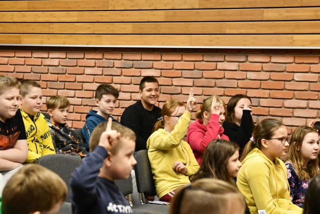 Autor zadawał uczniom ciekawe pytania i zagadki, przy których dzieci doskonale się bawiły.
