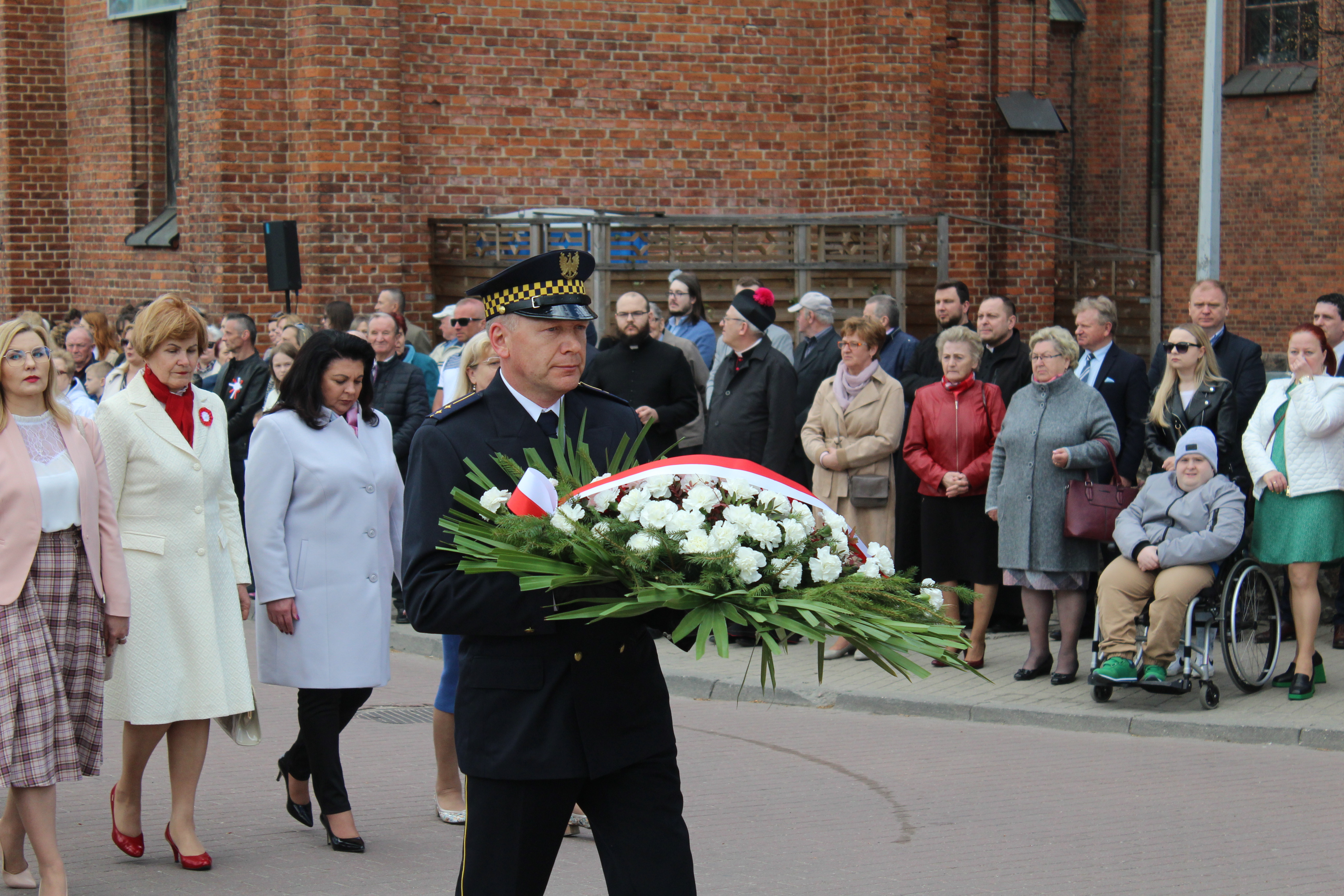 Przedstawiciele władz samorządowych, służb mundurowych oraz związków i stowarzyszeń złożyli kwiaty i zapalili znicze przed obeliskiem.
