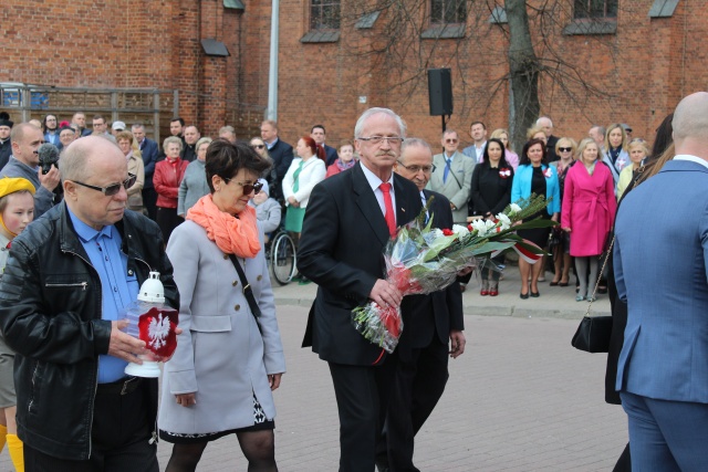 Przedstawiciele władz samorządowych, służb mundurowych oraz związków i stowarzyszeń złożyli kwiaty i zapalili znicze przed obeliskiem.