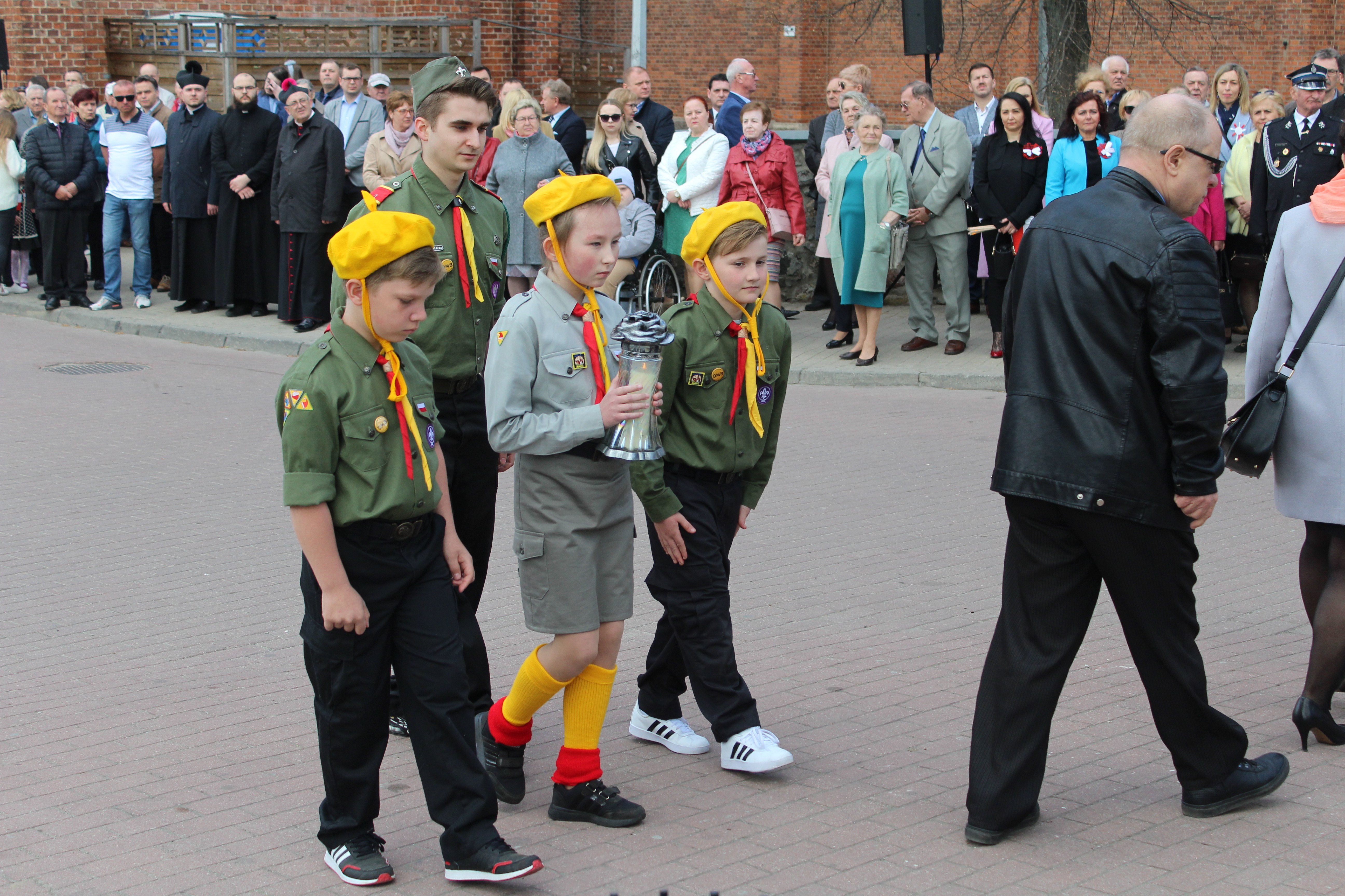 Przedstawiciele władz samorządowych, służb mundurowych oraz związków i stowarzyszeń złożyli kwiaty i zapalili znicze przed obeliskiem.
