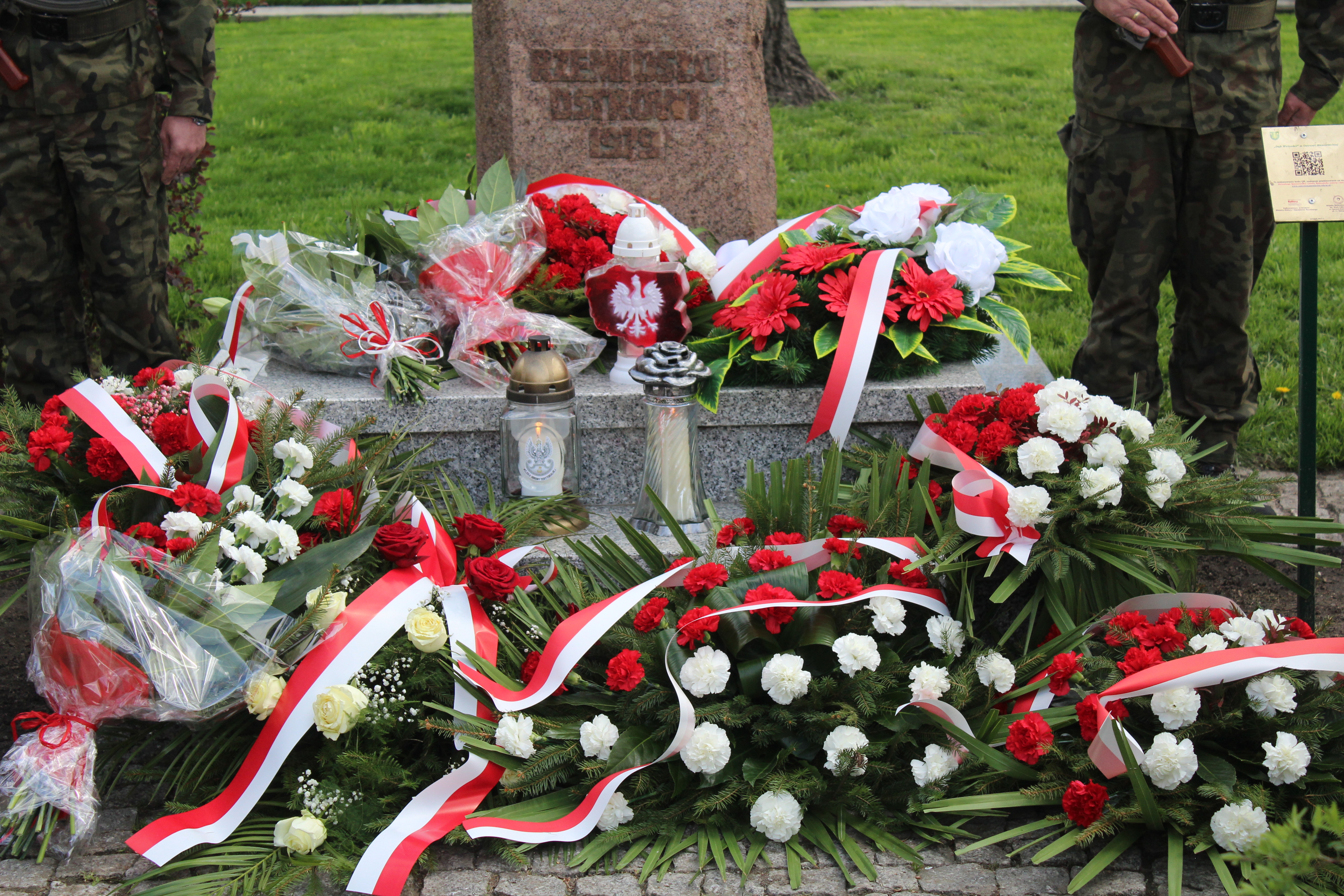 Przedstawiciele władz samorządowych, służb mundurowych oraz związków i stowarzyszeń złożyli kwiaty i zapalili znicze przed obeliskiem.