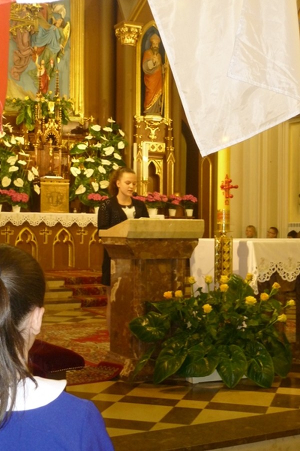 Ważnym elementem mszy był akt zawierzenia świętemu Janowi Pawłowi II Uczniów Nauczycieli i Pracowników Zespołu Szkół Publicznych nr 1 w Ostrowi Mazowieckiej przez panią dyrektor Dorotę Brzostek.