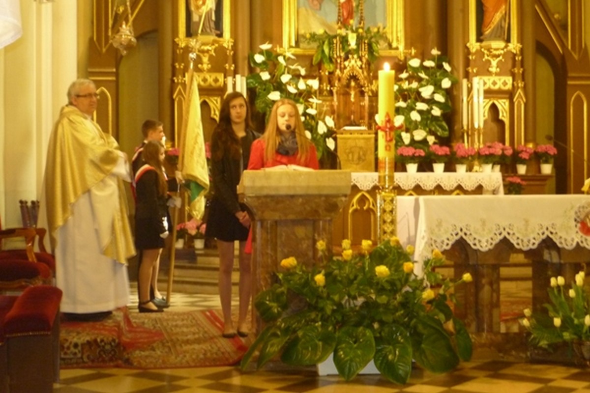 Ważnym elementem mszy był akt zawierzenia świętemu Janowi Pawłowi II Uczniów Nauczycieli i Pracowników Zespołu Szkół Publicznych nr 1 w Ostrowi Mazowieckiej przez panią dyrektor Dorotę Brzostek.