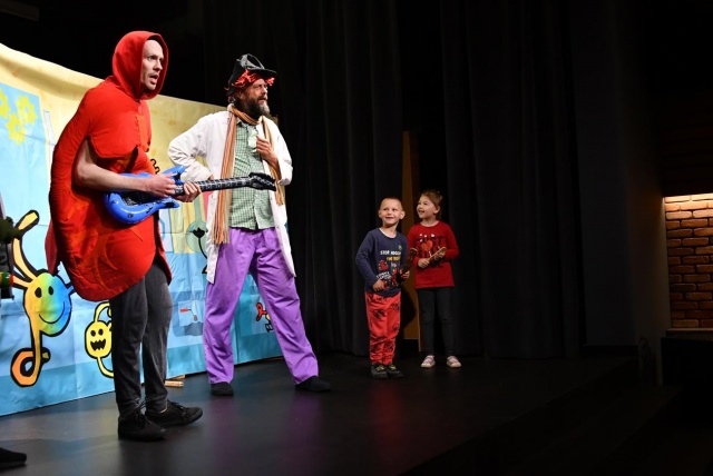 Bibliotekę odwiedzili aktorzy z Teatru Pomarańczowy Cylinder.