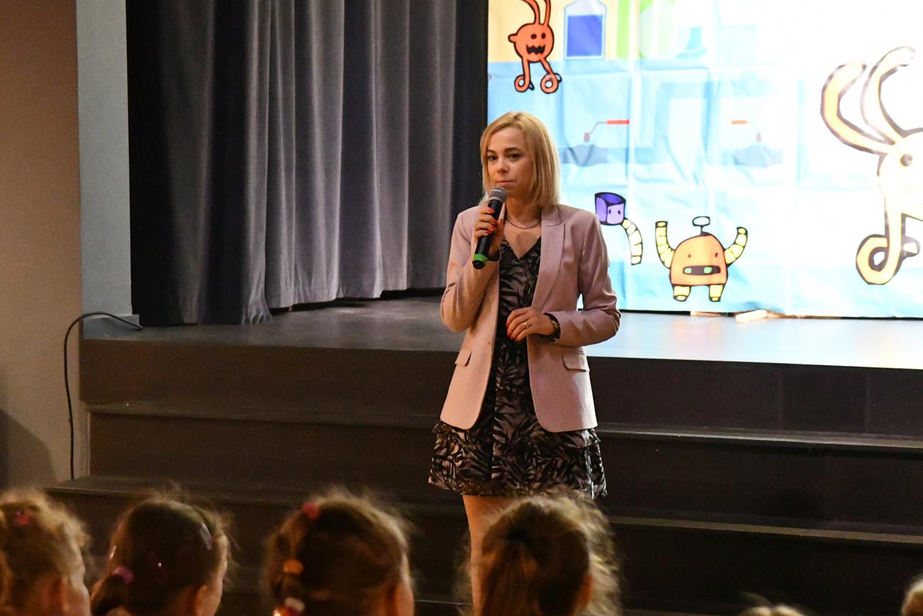 Bibliotekę odwiedzili aktorzy z Teatru Pomarańczowy Cylinder.