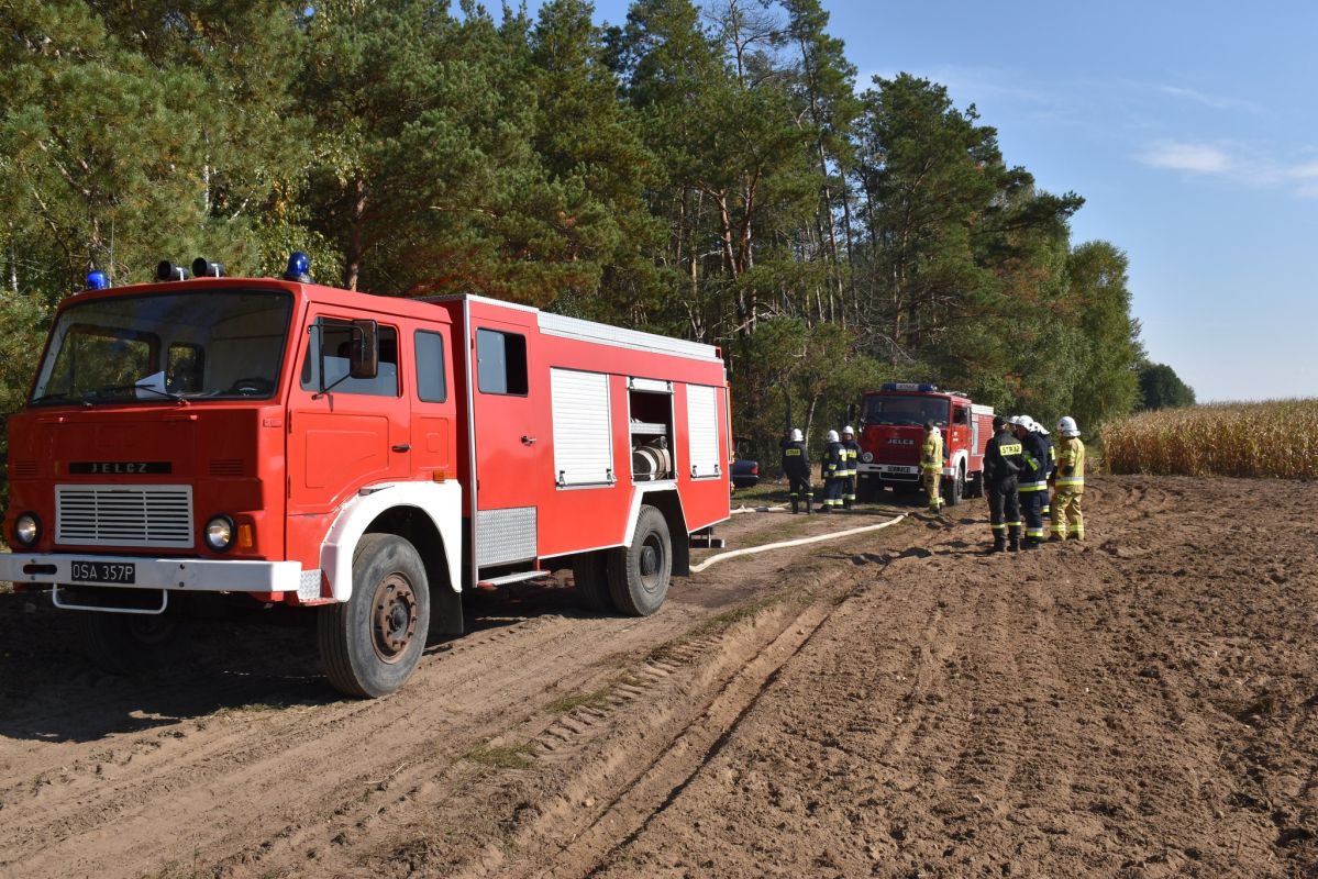 Wypadek samochodu przyczyną pożaru lasu w okolicach Gniazdowa , symulowane zdarzenie (25.09.2022) - Zdjęcie 9/68