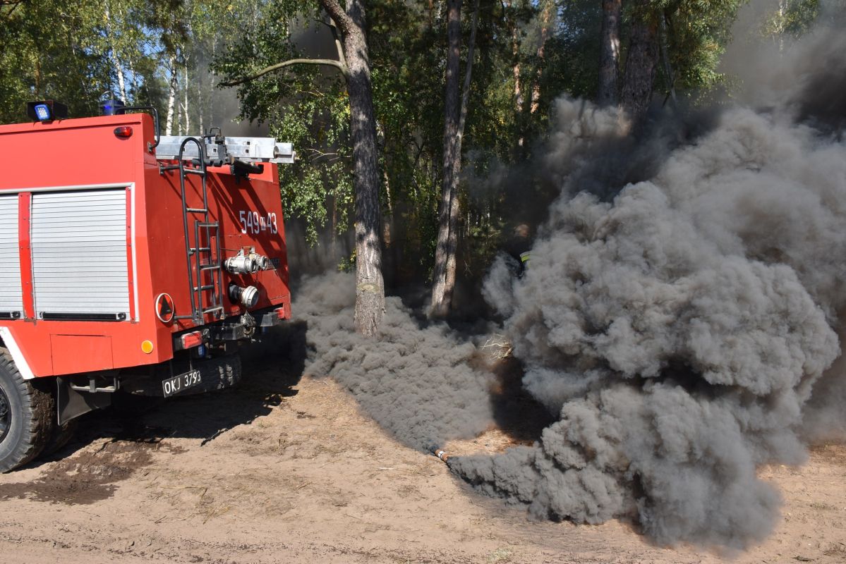 Wypadek samochodu przyczyną pożaru lasu w okolicach Gniazdowa , symulowane zdarzenie (25.09.2022) - Zdjęcie 40/68