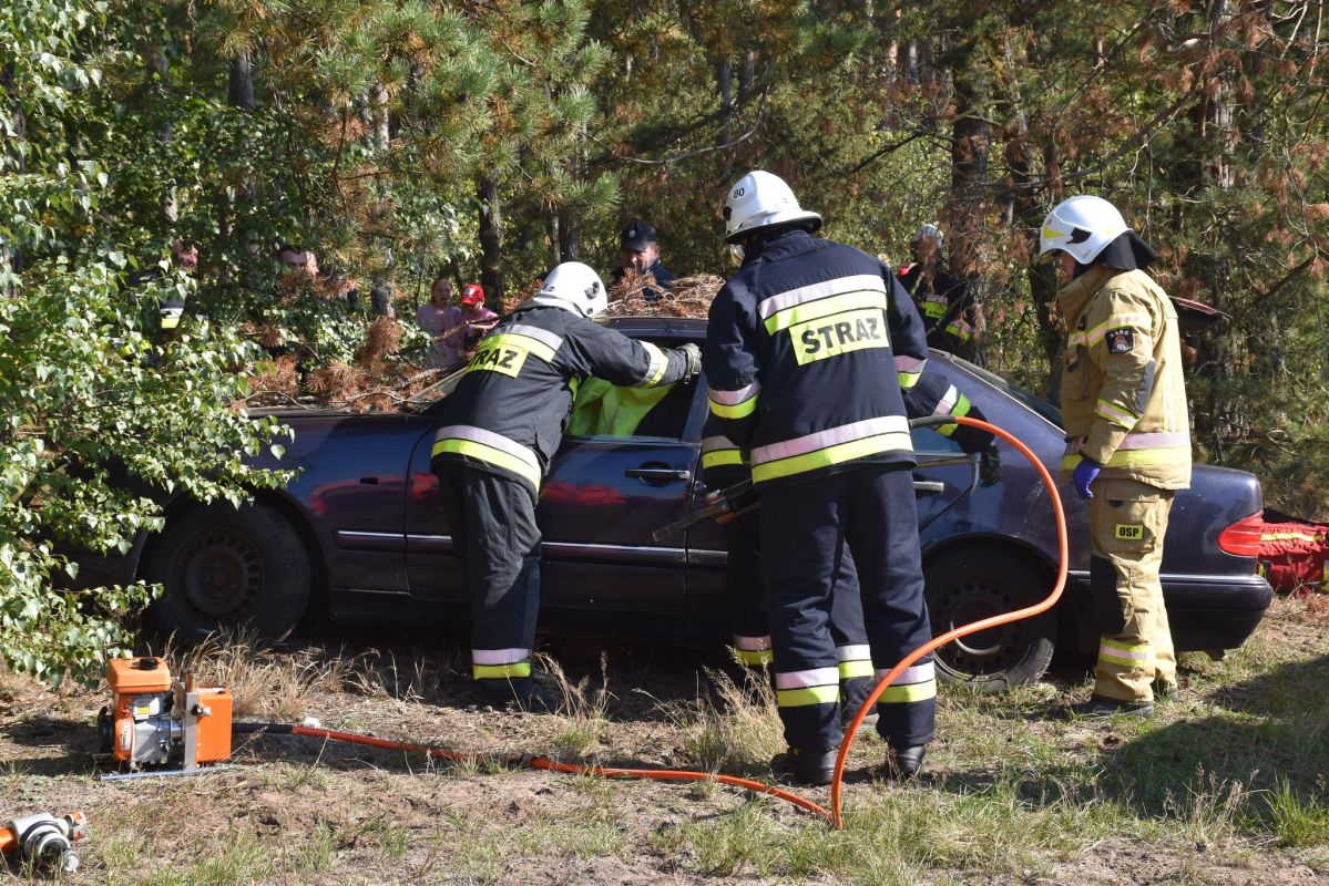 Wypadek samochodu przyczyną pożaru lasu w okolicach Gniazdowa , symulowane zdarzenie (25.09.2022) - Zdjęcie 41/68