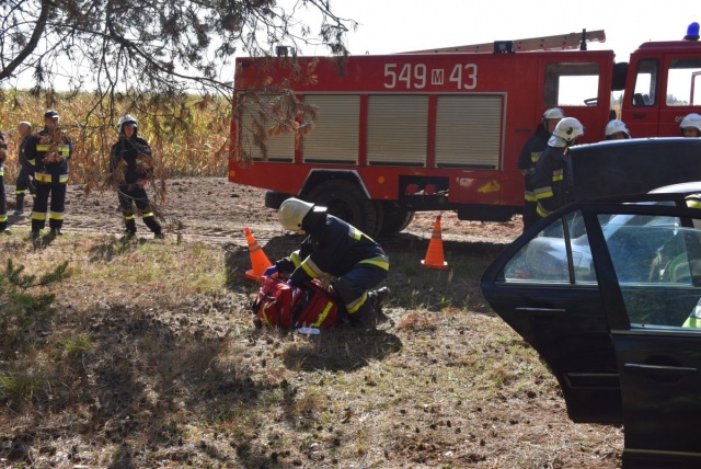 Wypadek samochodu przyczyną pożaru lasu w okolicach Gniazdowa , symulowane zdarzenie (25.09.2022) - Zdjęcie 68/68