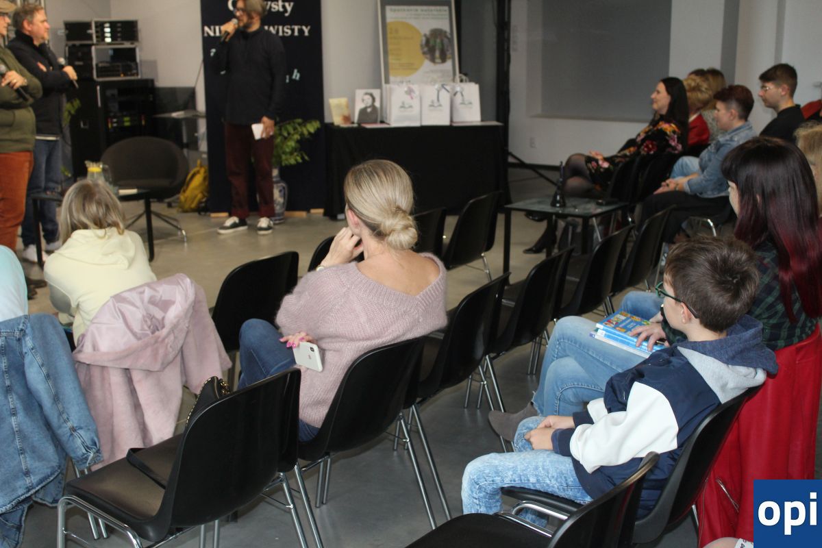 Spotkanie autorskie z Grzegorzem Kasdepke i Hubertem Klimko-Dobrzanieckim w ostrowskiej Starej elektrowni (28.09.2022) - Zdjęcie 13/17