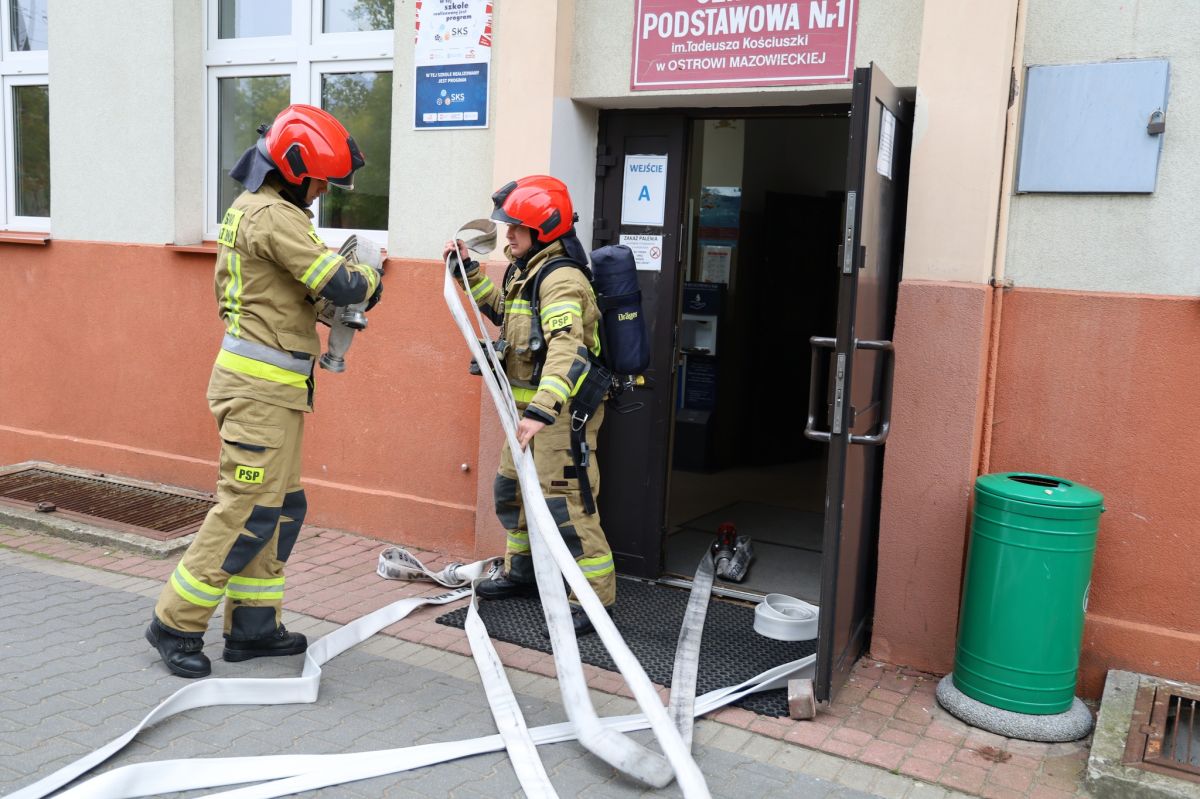 Ewakuacja Szkoły Podstawowej Nr 1 w Ostrowi Mazowieckiej (29.09.2022) - Zdjęcie 9/19