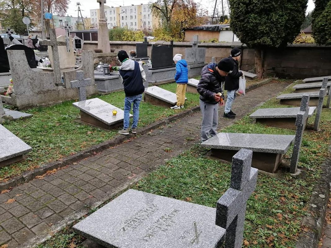 Uczniowie ze Szkoły Podstawowej Nr 2 zapalili znicze na mogiłach żołnierskich (28.10.2022) - Zdjęcie 1/28