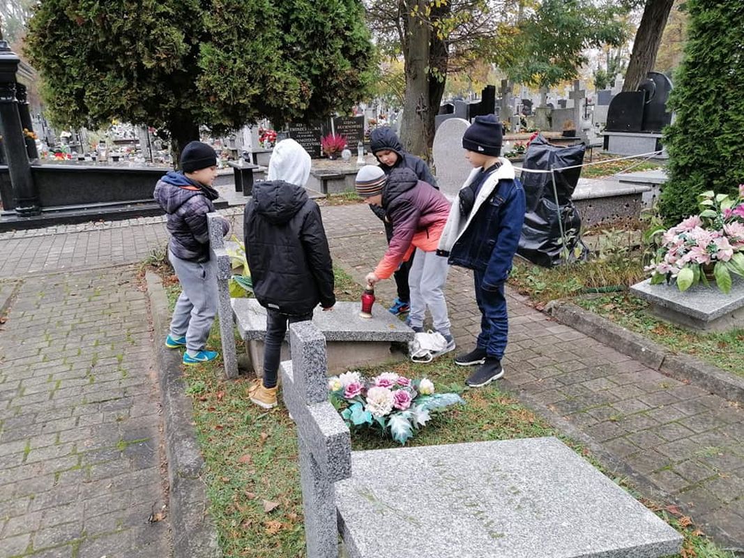 Uczniowie ze Szkoły Podstawowej Nr 2 zapalili znicze na mogiłach żołnierskich (28.10.2022) - Zdjęcie 13/28