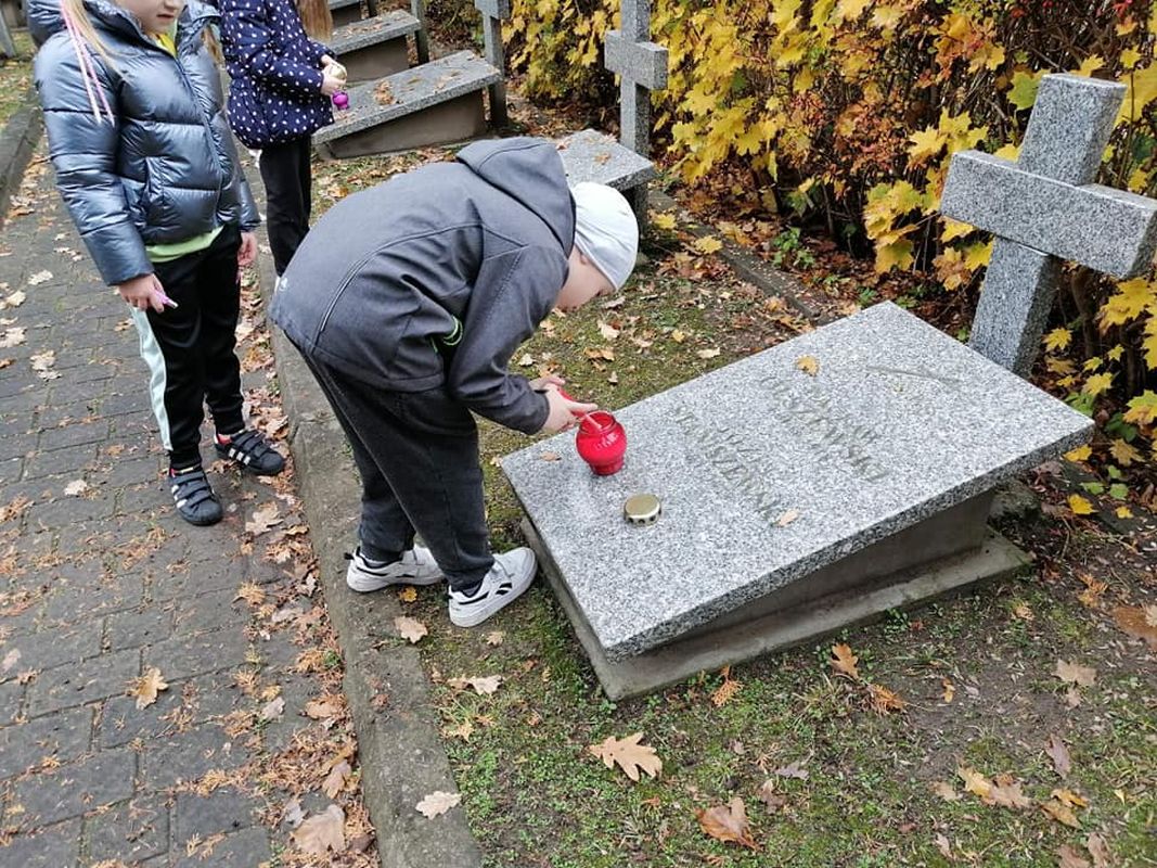 Uczniowie ze Szkoły Podstawowej Nr 2 zapalili znicze na mogiłach żołnierskich (28.10.2022) - Zdjęcie 17/28