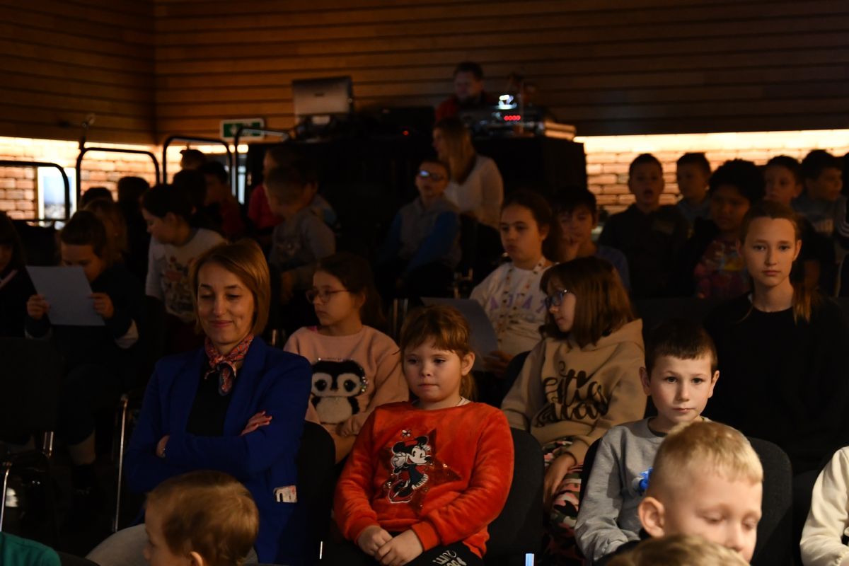 Warsztaty muzyczne dla dzieci, prowadzone przez damski kwartet muzyczny "Amok", na Sali Widowiskowej, przy ul. Pułtuskiej 22 w Broku.
