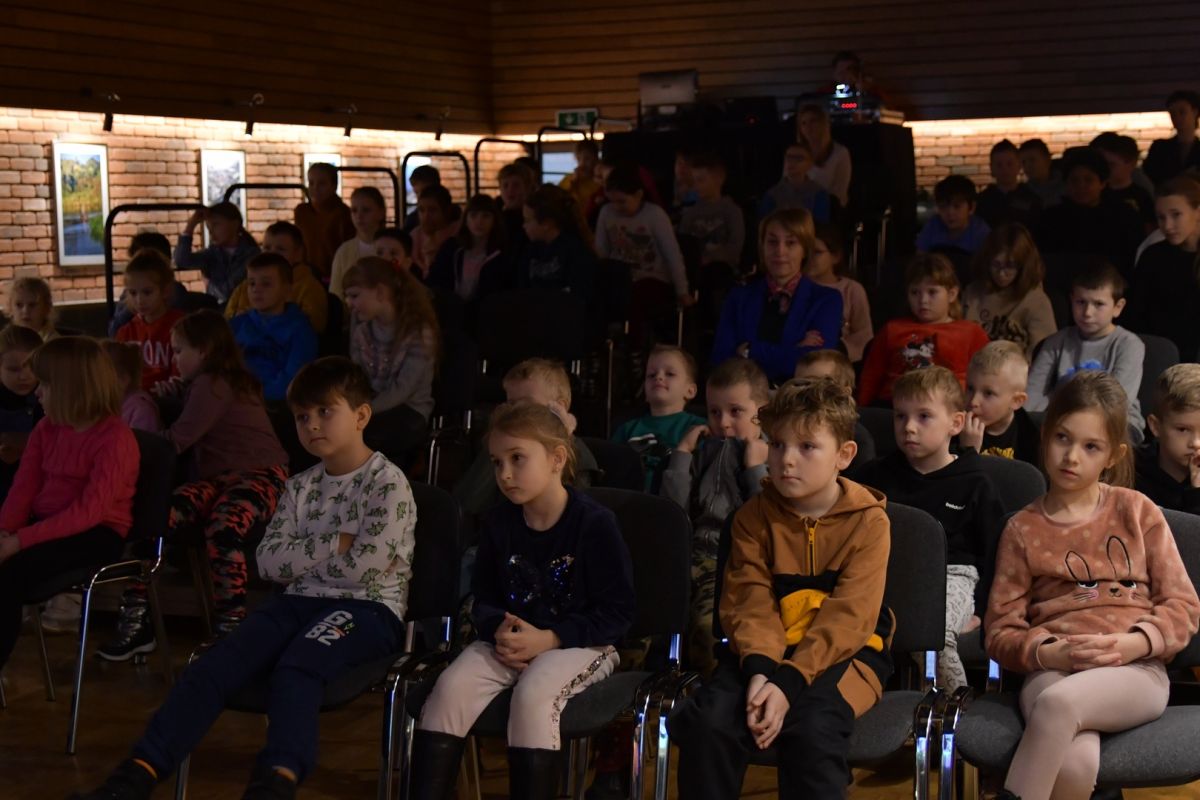 Warsztaty muzyczne dla dzieci, prowadzone przez damski kwartet muzyczny "Amok", na Sali Widowiskowej, przy ul. Pułtuskiej 22 w Broku.