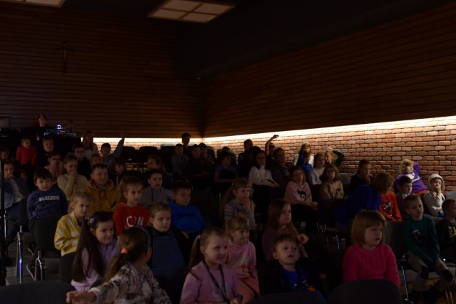 Warsztaty muzyczne dla dzieci, prowadzone przez damski kwartet muzyczny "Amok", na Sali Widowiskowej, przy ul. Pułtuskiej 22 w Broku.