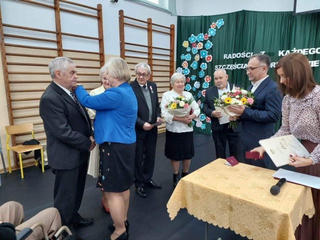 50 lat temu, 3 pary z gminy Zaręby Kościelne stanęło na ślubnym kobiercu. Z tej okazji w środę, 23 listopada 2022, w Szkole Podstawowej w Zarębach Kościelnych odbyła się uroczystość Złotych Godów.