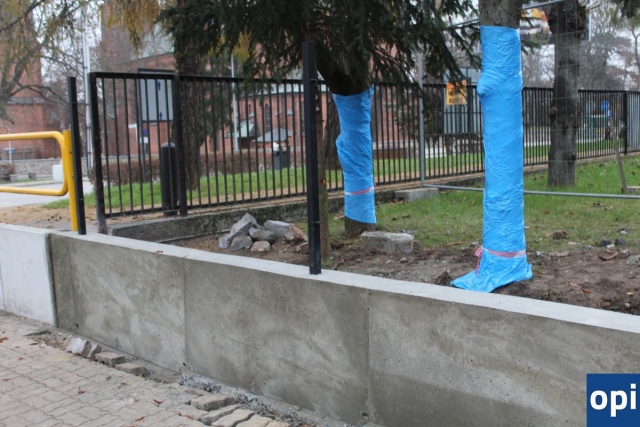 Zdjęcia ukazujące postępy przy wymianie ogrodzenia działki, na której znajduje się LO im. M. Kopernika, ale także uszkodzeń powstałych na chodniku wskutek remontu.
