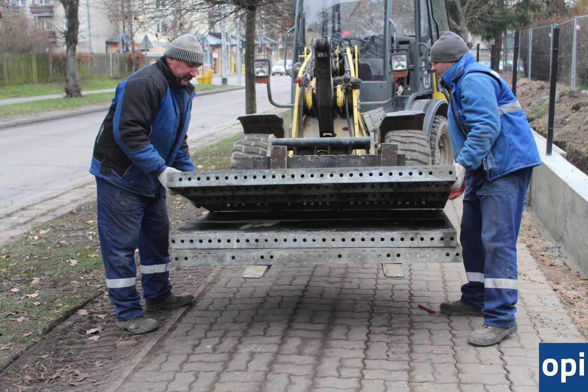 Zdjęcia ukazujące postępy przy wymianie ogrodzenia działki, na której znajduje się LO im. M. Kopernika, ale także uszkodzeń powstałych na chodniku wskutek remontu.