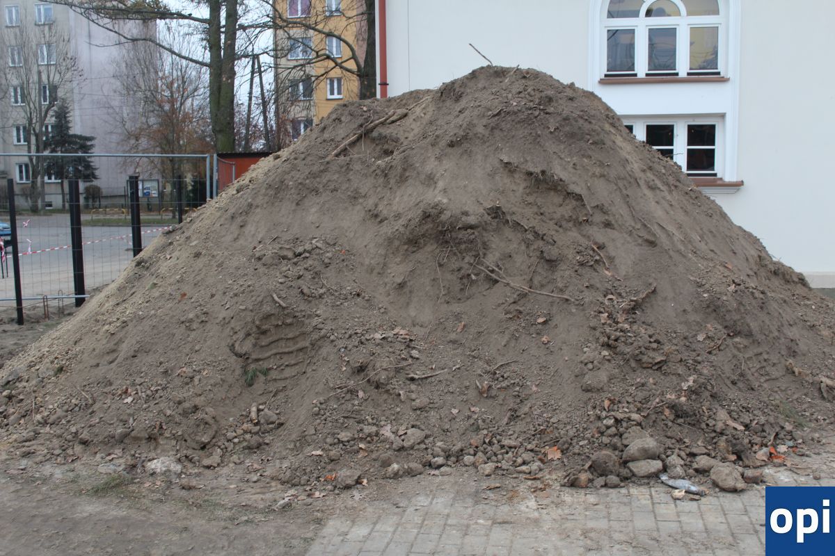 Zdjęcia ukazujące postępy przy wymianie ogrodzenia działki, na której znajduje się LO im. M. Kopernika, ale także uszkodzeń powstałych na chodniku wskutek remontu.