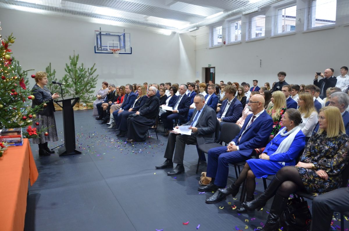 Oficjalne otwarcie wyremontowanej sali gimnastycznej w Zespole Szkół nr 2 im. Powstańców Styczniowych w Ostrowi Mazowieckiej, na które zaproszono wielu oficjeli.