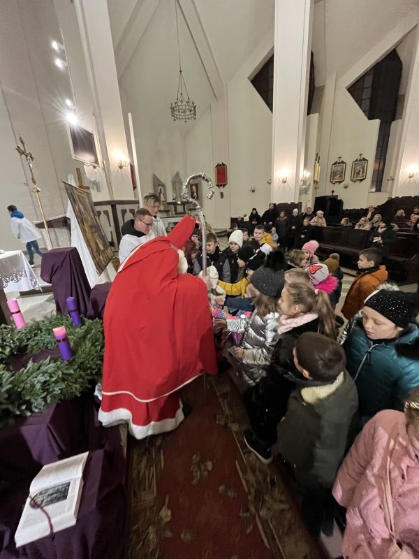 Mikołaj odwiedził dzieci biorące udział w roratach w ostrowskiej parafii Chrystusa Dobrego Pasterza.