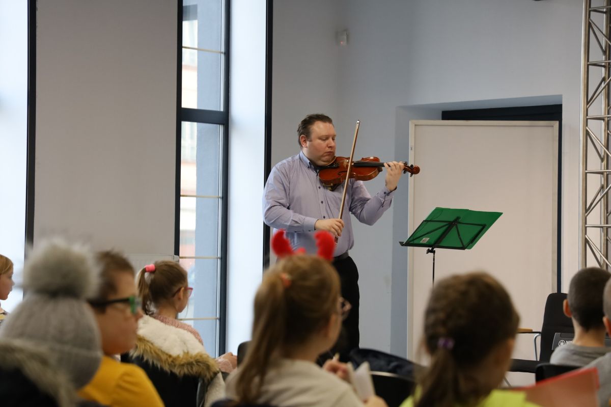 Artyści z Filharmonii Kameralnej im. Witolda Lutosławskiego w Łomży poprowadzili audycje dla dzieci w ramach Miejskiego Programu Edukacji Muzycznej.