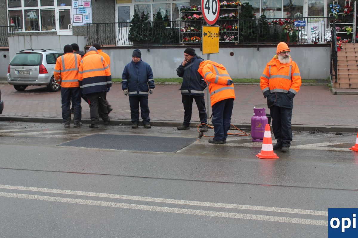 Szybka akcja remontowa nawierzchni asfaltu na ul. Lubiejewskiej, na wysokości kwiaciarni.