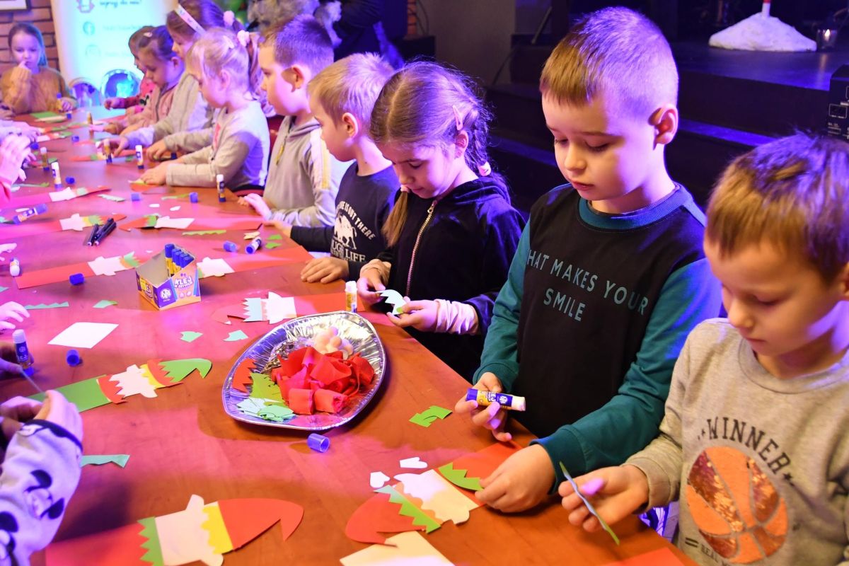 Warsztaty plastyczne, nawiązujące do spektaklu "Świąteczny list" Teatru Bajaderka, które odbyły się w brokowskiej bibliotece.