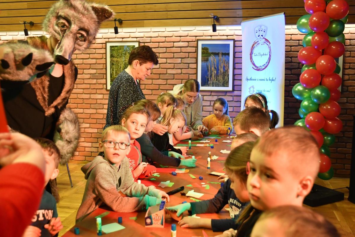 Warsztaty plastyczne, nawiązujące do spektaklu "Świąteczny list" Teatru Bajaderka, które odbyły się w brokowskiej bibliotece.