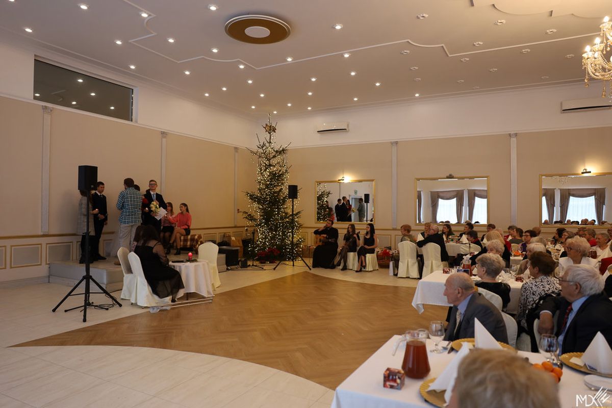 Spotkanie wigilijne słuchaczy Uniwersytetu Trzeciego Wieku i Klubu Seniora Złota Jesień, które odbyło się w Zajeździe Cobra.