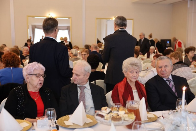 Spotkanie wigilijne słuchaczy Uniwersytetu Trzeciego Wieku i Klubu Seniora Złota Jesień, które odbyło się w Zajeździe Cobra.
