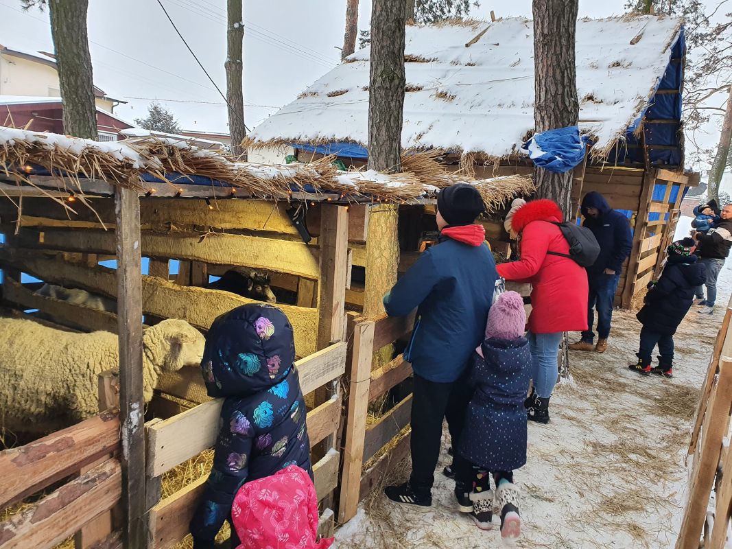 Szopka bożonarodzeniowa z udziałem żywych zwierząt w Małkini Górnej, wystawiona z okazji świąt Bożego Narodzenia 2022.