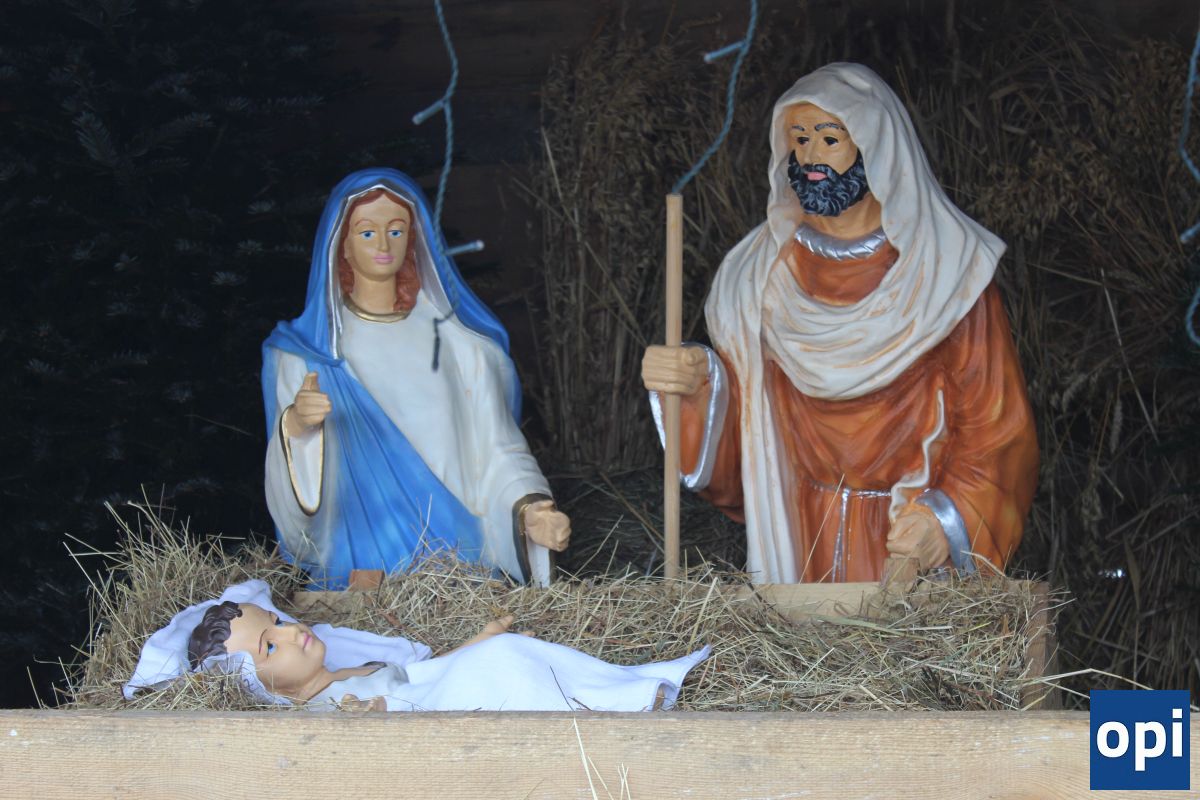 Szopka bożonarodzeniowa z udziałem żywych zwierząt w Broku, wystawiona z okazji świąt Bożego Narodzenia 2022.