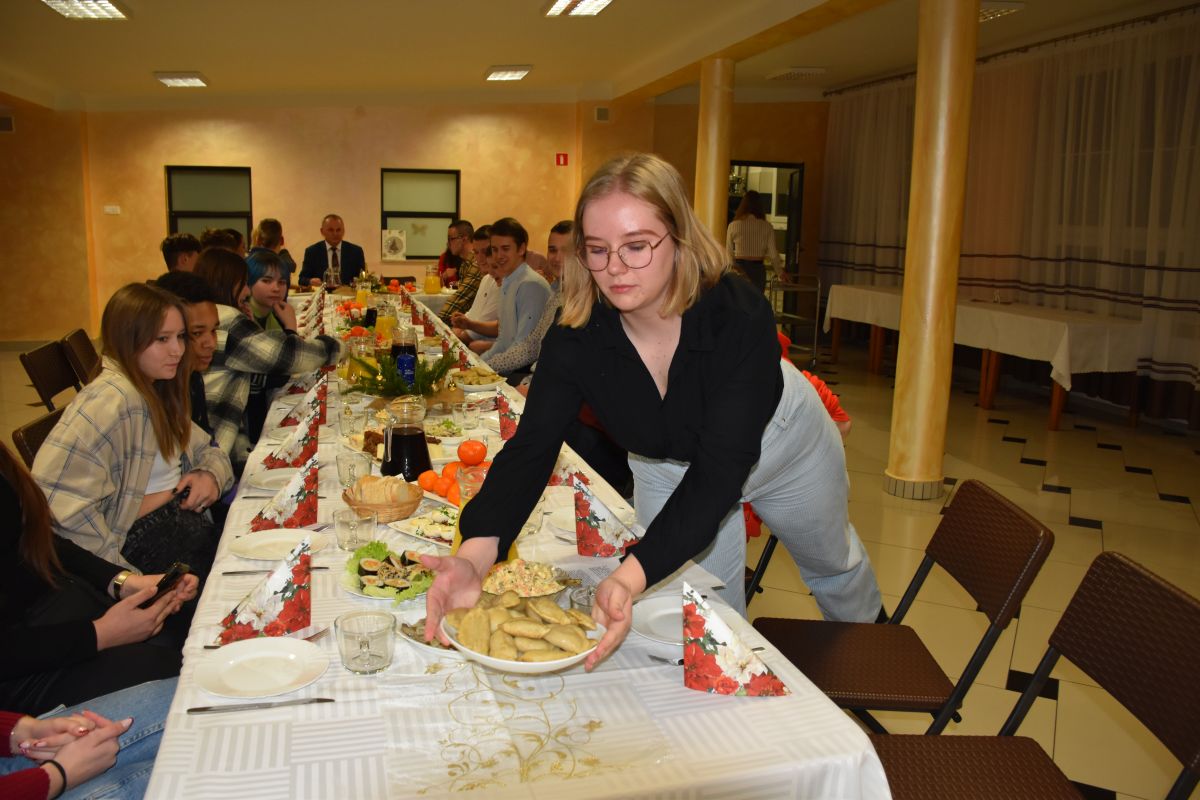 Społeczność internatu z Zespołu Szkół Centrum Kształcenia Rolniczego w Starym Lubiejewie zasiadła do uroczystej kolacji wigilijnej.